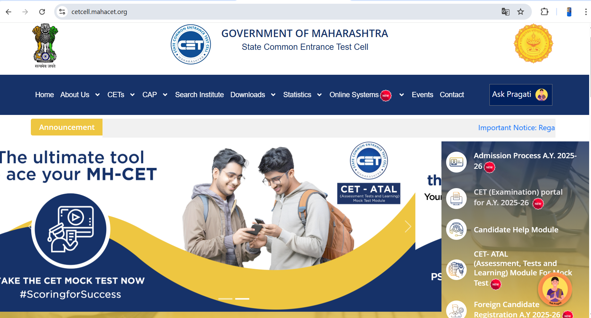 Common entrance tests such as MHT-CET/NEET/JEE year 2025-26